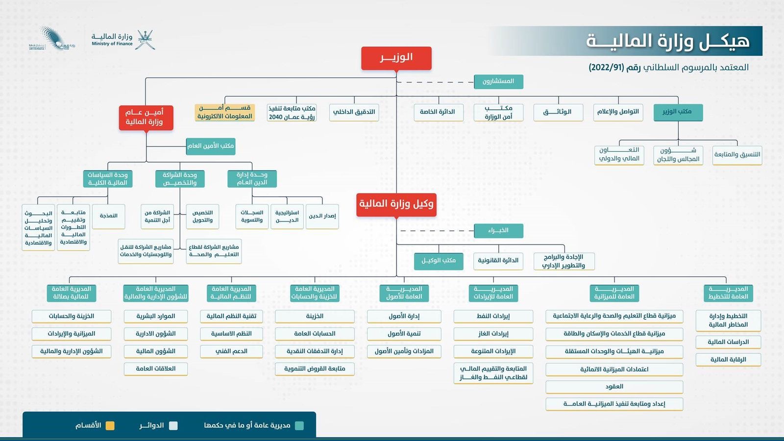 The organizational structure of the Ministry of Finance according to Royal Decree No. (91/2022).